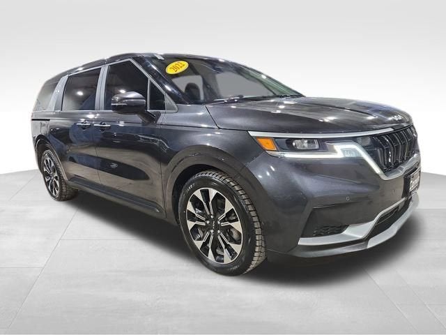Move into our One Owner 2022 Kia Carnival MPV EX in Pantera Metal and make other minivan owners jealous! Motivated by a 3.5 Liter V6 providing 290hp to an 8 Speed Automatic transmission for family-friendly strength to do more on every ride. This impressive Front Wheel Drive multipurpose vehicle also rewards you with responsive handling in town and the ability to see nearly 26mpg on the highway. Bold SUV-like styling sets our Carnival apart from the usual crowd and is complemented by LED lighting, heated power mirrors, premium alloy wheels, a hands-free tailgate, and power sliding side doors.