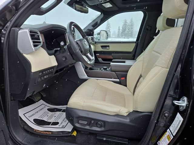 Inspired by ranching royalty, our 2023 Toyota Tundra 1794 Edition CrewMax 4X4 is where style and strength come together in Midnight Black Metallic! Powered by a Twin-TurboCharged 3.4 Liter i-FORCE MAX V6 and an Electric Motor supplying a combined 437hp for a 10 Speed Automatic transmission. This feature-rich Four Wheel Drive truck also tows, hauls, and travels with impressive road manners, and it returns nearly 22mpg on the highway. Exclusive details enhance our Tundra's good looks with chrome accents, a panoramic sunroof, premium LED lighting, fog lamps, sequential turn signals, and 20-inch alloy wheels.